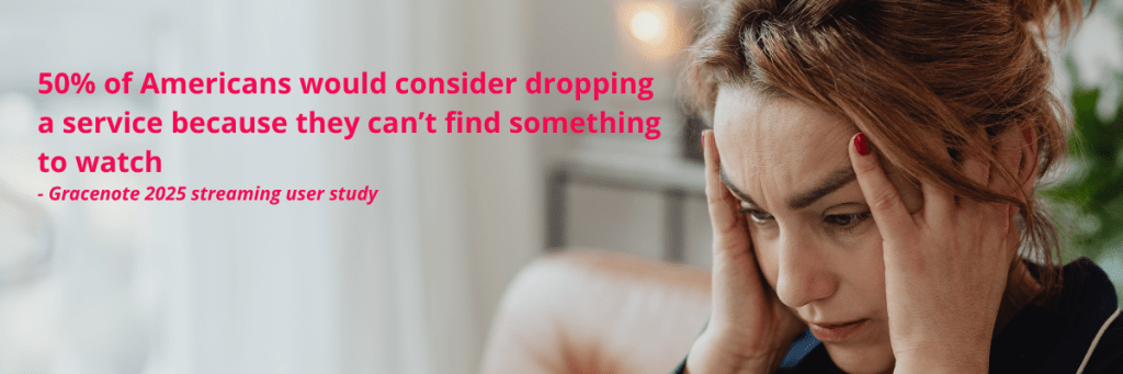 En el mundo del entretenimiento, las editoriales y los proveedores de contenidos saben que sus clientes no quieren detenerse a verificar cada búsqueda que realizan. También saben que el riesgo de cancelación es real. Según Broadband TV News, las tasas medias de cancelación de las principales plataformas de streaming se situaron en el 5,5 % el año pasado, frente al 2 % registrado en 2019.