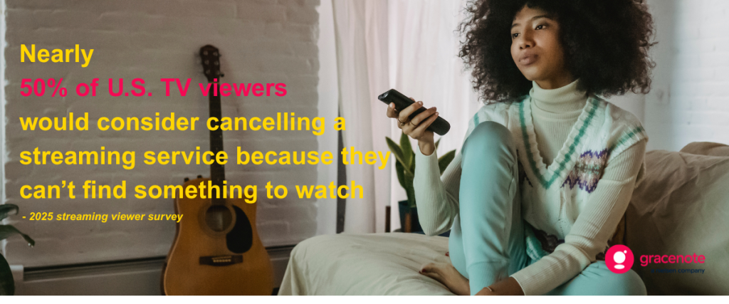 In fact, a recent industry survey found that nearly 50% of U.S. TV viewers would consider canceling a streaming service because they cannot find something to watch. Among audiences aged 25 to 34, that figure rises to 58%.